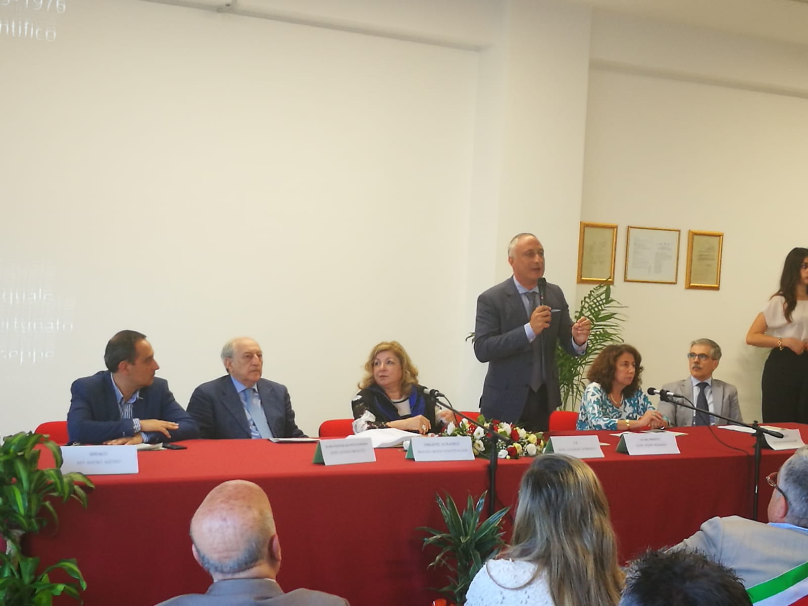 Ha tagliato il nastro la prof.ssa Grazia Scalisi Gullotti dirigente dell’Istituto alla presenza di numerose autorità: il Vescovo di Patti Mons. Guglielmo Giombanco, il vice Prefetto vicario di Siracusa Dott. Filippo Romano, già Commissario straordinario della Città Metropolitana di Messina che ha portato avanti con costante impegno il progetto di accorpamento del Liceo, il vice Prefetto di Messina dott.ssa Natalia Ruggeri, il dott. Gustavo Ricevuto già Provveditore agli studi di Messina, numerosi Sindaci del comprensorio e il team dell’Ente di responsabili tecnici e amministrati: il R.U.P. dott. Pasquale Costa, il geometra Antonino Miceli, il dott. Antonino Palazzolo.