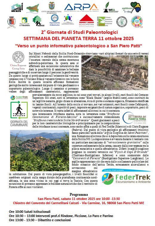 2. https://www.settimanaterra.org/geoeventi/5197 VERSO UN PUNTO INFORMATIVO PALEONTOLOGICO A SAN PIERO PATTI – 2^ GIORNATA DI STUDI PALEONTOLOGICI