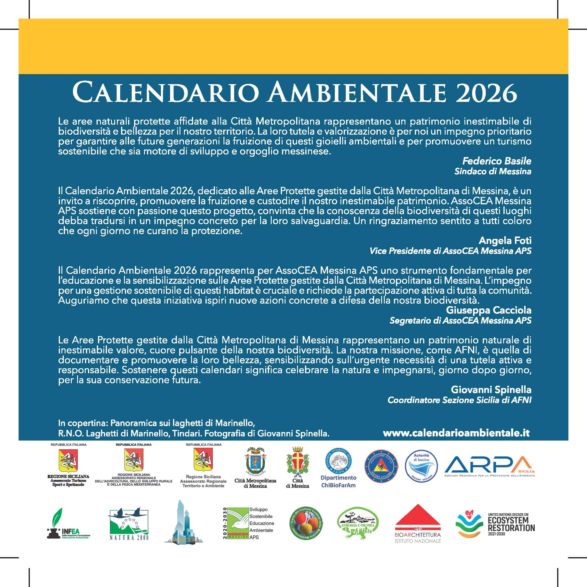 Il Calendario Ambientale (http://www.calendarioambientale.it) del 2026 è dedicato alla Aree Protette della Città Metropolitana di Messina.